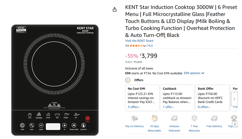 कई यूजर्स ने बताया है कि जिन इंडक्शन स्टोव की कीमत कुछ समय पहले तक कम थी, अब वे पहले से कहीं ज्यादा महंगे हो गए हैं। ई-कॉमर्स प्लेटफॉर्म Amazon पर इंडक्शन कुकर की बढ़ती कीमतों को लेकर सोशल मीडिया पर भी चर्चा तेज हो गई है।